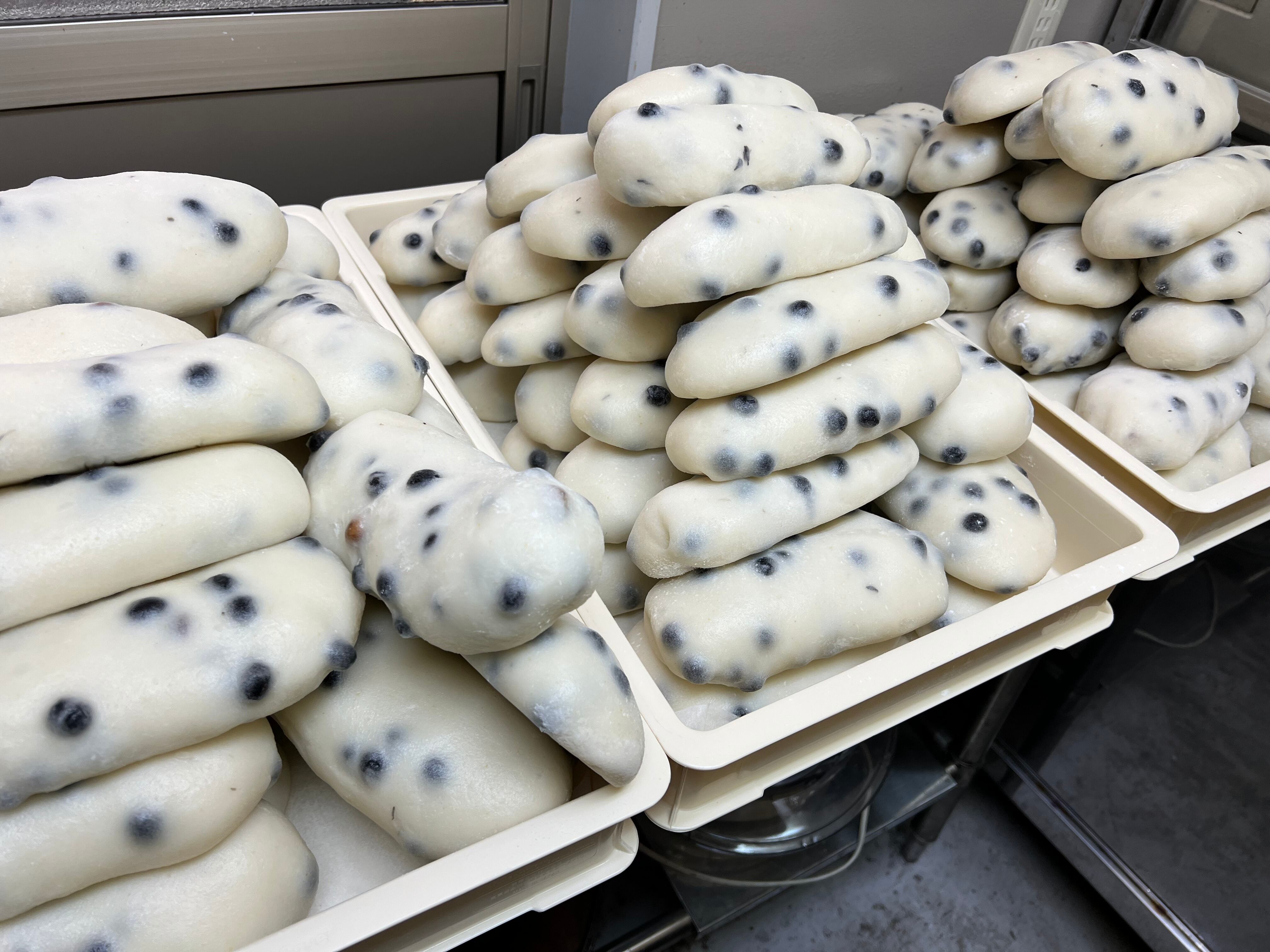 黒豆の風味や餅米ののびの良さ、塩味が食欲をそそる大人気の豆餅です!!