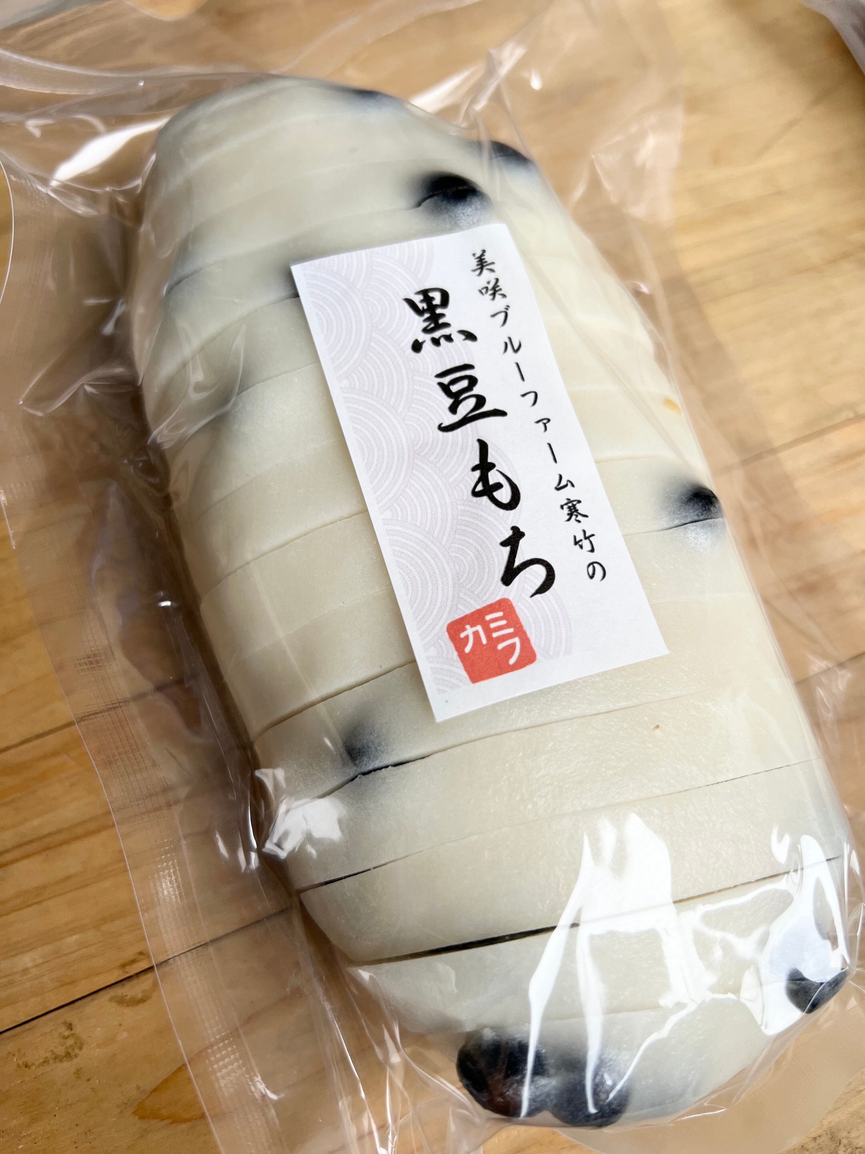 当園栽培の2種類の餅米をブレンドし、岡山県産の黒豆を使って、杵つきした塩味の豆餅です。